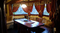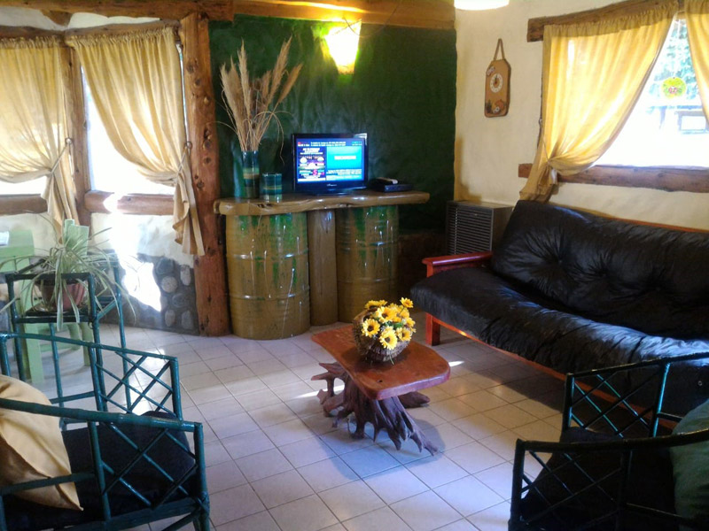 Disponemos de cabañas con capacidad desde 2 a 9 personas, hogar a leña, calefacción a leña y a gas, confortables sillones, ventanales panorámicos, mobiliario rústico artesanal, antebaño y baño completo con bañera de piedra (algunas), secador de cabello, cocina equipada con microondas, cafetera, tostadora eléctrica, DirecTV, servicio de WiFi, en el exterior parrilla, mesa, bancos, reposeras, sombrilla, etc.