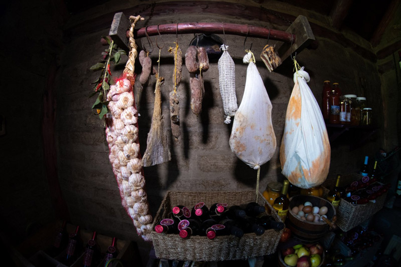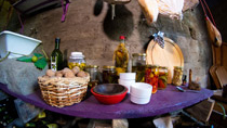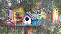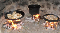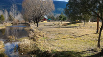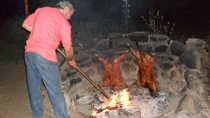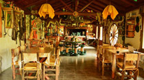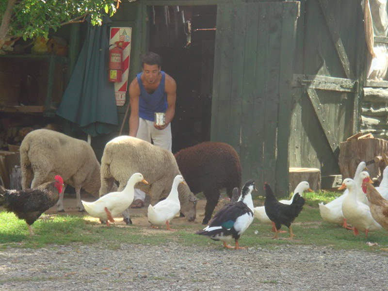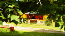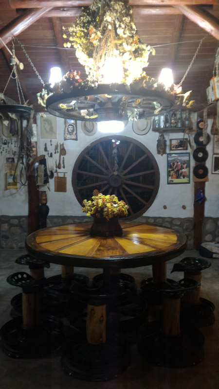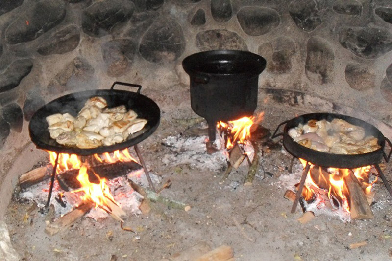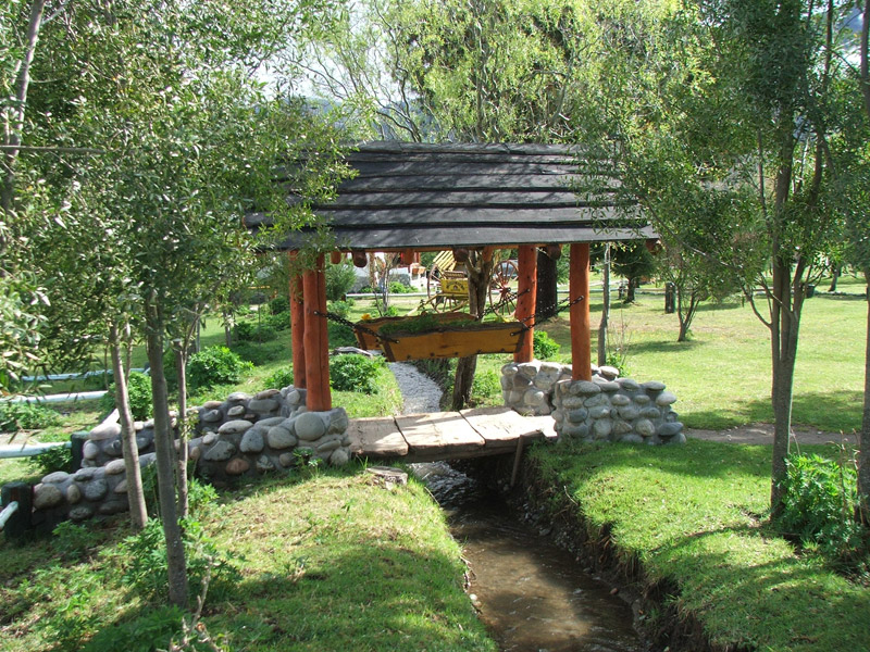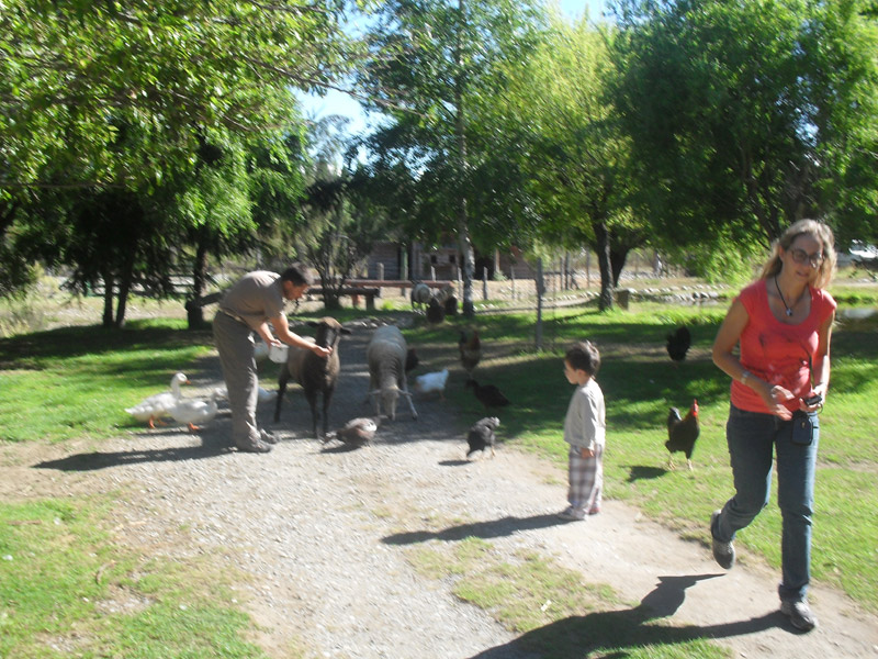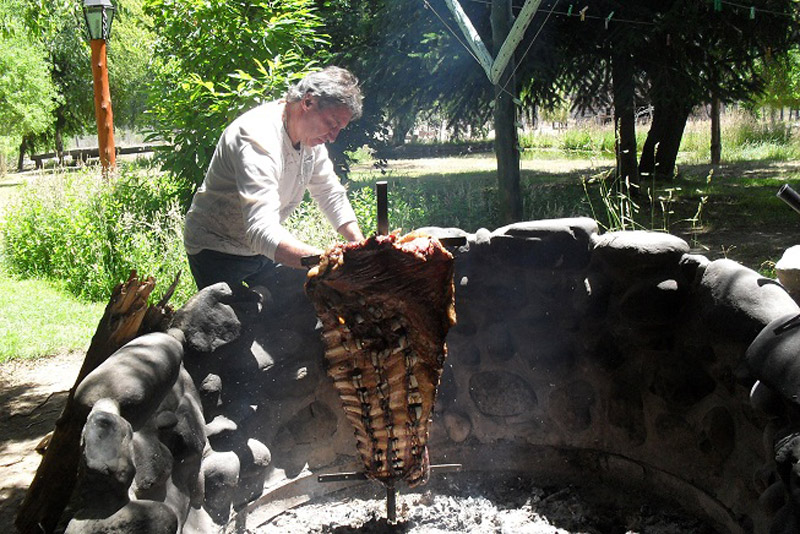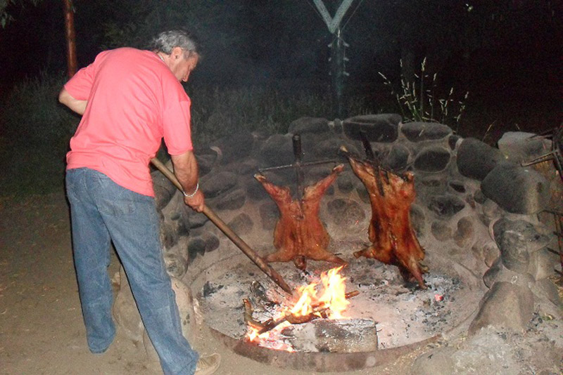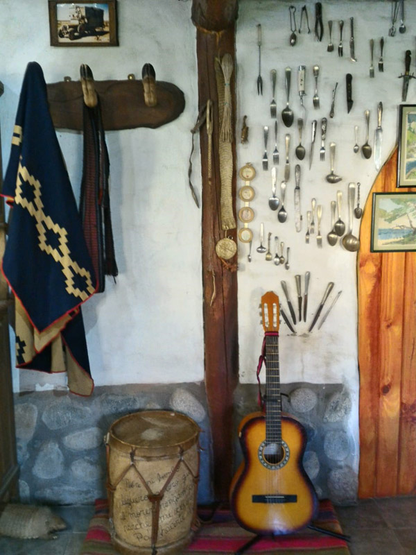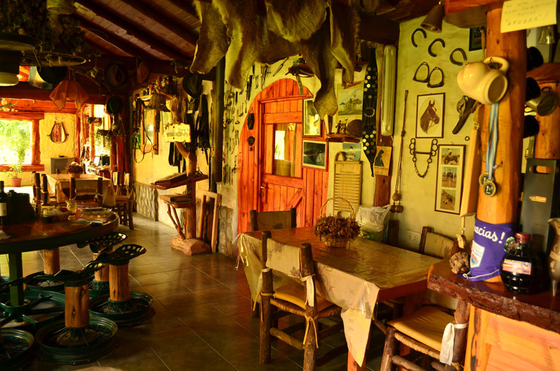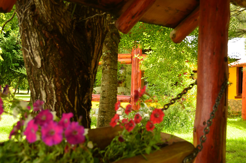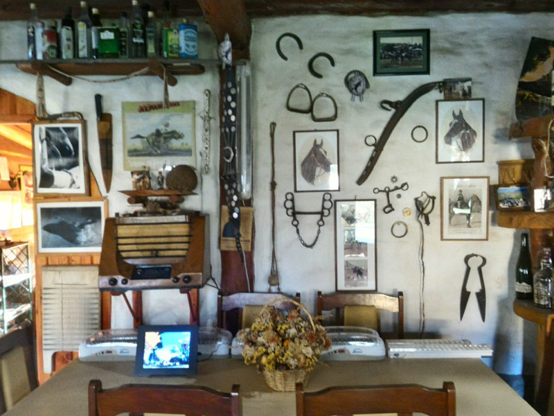 Plantas nativas, una alfombra verde natural, fogones, horno de barro, arados, sulkys, aljibe, completan un ambiente gauchesco.