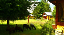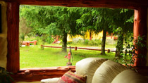 Estamos en una zona rural, en un predio de 3 Has., con una vista inigualable, enfrentados al majestuoso Cerro Piltriquitrón, entre el Río Azul y el Río Quemquemtreu. Esto indica la cuota de paz que se percibe.